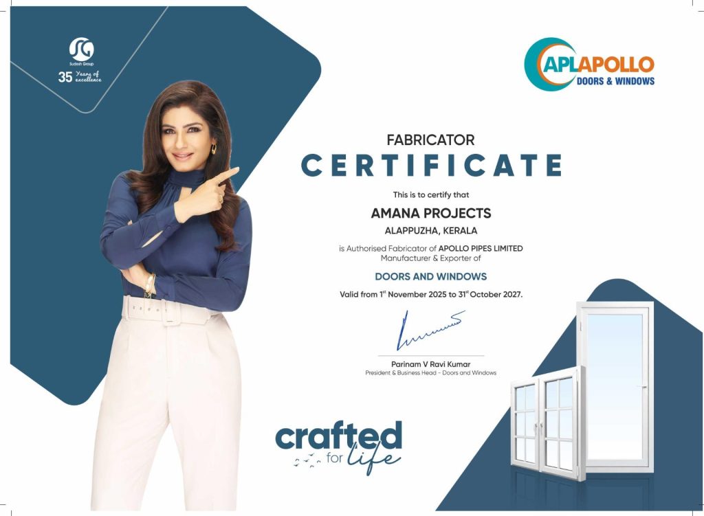 “uPVC windows and doors in Kochi, Amana Projects Leading upvc, aluminium and glass manufacturer in Kerala. Premium quality and Low price, Pioneers in this field. “Established in 1991, we are a leading window fabricator with more than 30 years of experience in the industry. We specialize in the manufacturing and installation of high-quality uPVC windows, doors, and conservatories for residential and commercial properties.